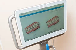 口腔内をスキャンすることで歯の型取りを3DでDATAとして読み取る口腔内スキャナー。歯の型取りの他、隣接面のむし歯検知や、咬合面の摩耗、歯垢・歯石の取り残しなども確認できる高機能口腔内スキャナー。スキャンしたデータから、歯並び矯正のシミュレーションを行ったり、マウスピース矯正装置を作成して歯並び治療を管理することが可能です。