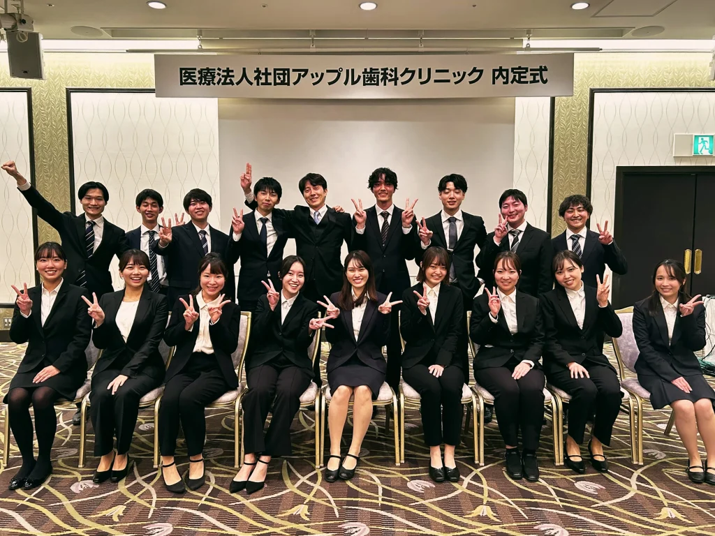 毎年1月に、アップル歯科へ内定が決まったメンバーを、内定式を開催しています。先輩の先生の話、入社前事前説明なども併せて行っています。