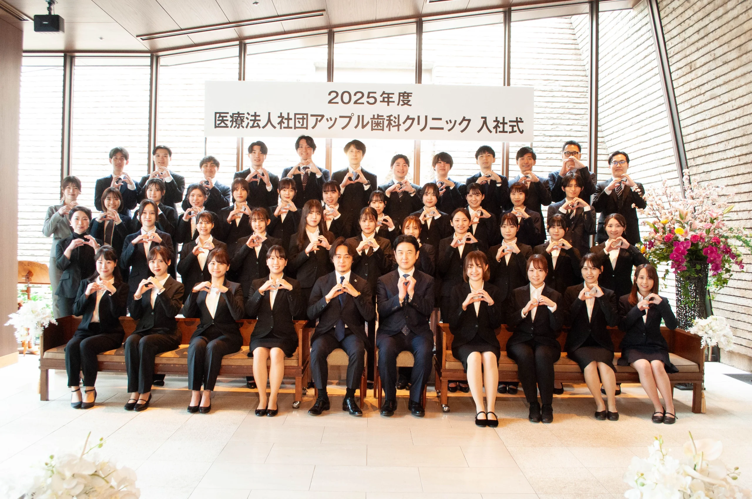 入社式では、入社の抱負を述べていただき、アップル歯科の一員として社会人の第一歩を踏み出していただきます。入社を心待ちにしていた仲間の円卓を囲み、心からお祝いします。
